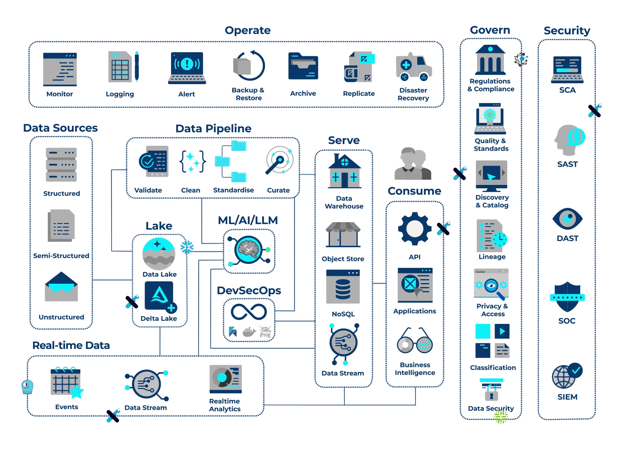 Definição de papéis claros para gestão de dados, garantindo responsabilidade pela qualidade e conformidade.
